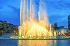 Fântâna Dubai aruncă apa până la 30 de metri înălțime și oferă un spectacol asigurat de 6.600 de lumini, 25 de proiectoare colorate și muzică.