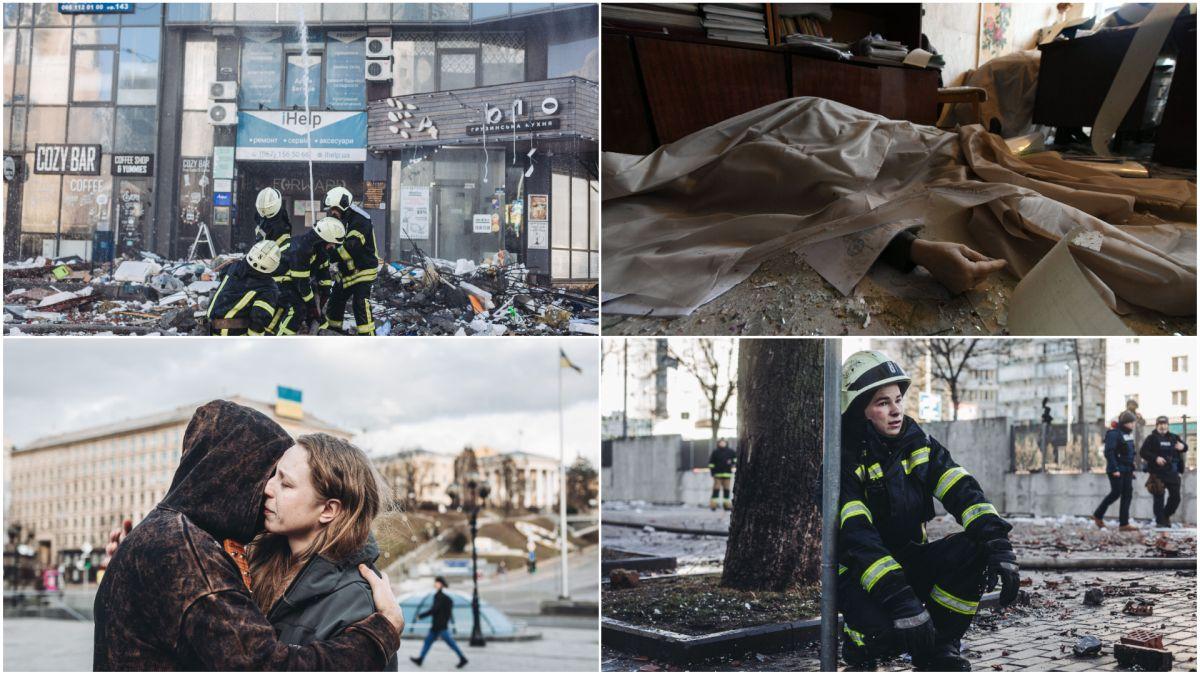 Update 10.15 Cladire din Bucha - periferie Kiev - lovită de o rachetă lansată de trupele ruse