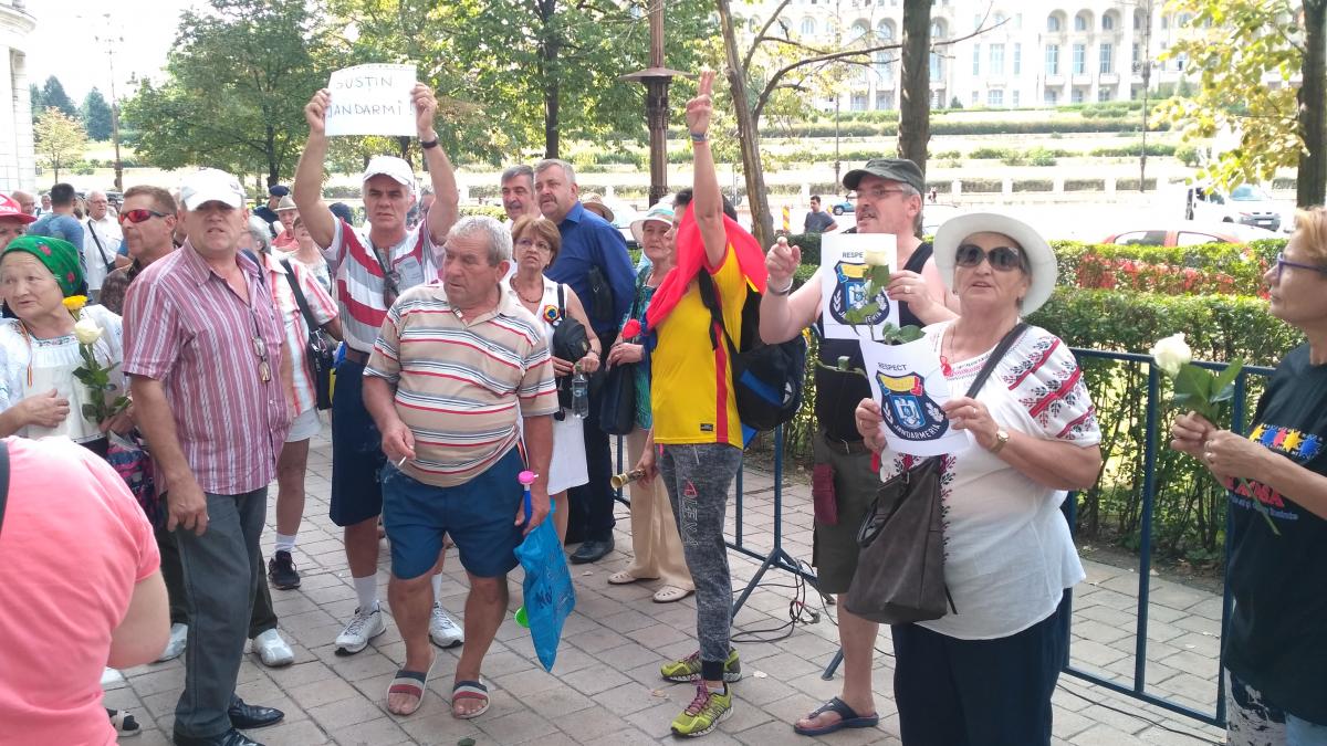 Câteva zeci de persoane s-au strâns, sâmbătă, în Piaţa Constituţiei, în faţa Parchetului General, pentru a-şi exprima susţinerea faţă de Jandarmerie, în contextul mitingului din 10 august.