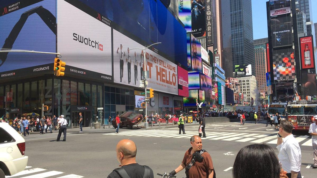 Maşina s-a izbit apoi într-un stâlp şi a rămas blocată la intersecţia între 45th Street şi Broadway.