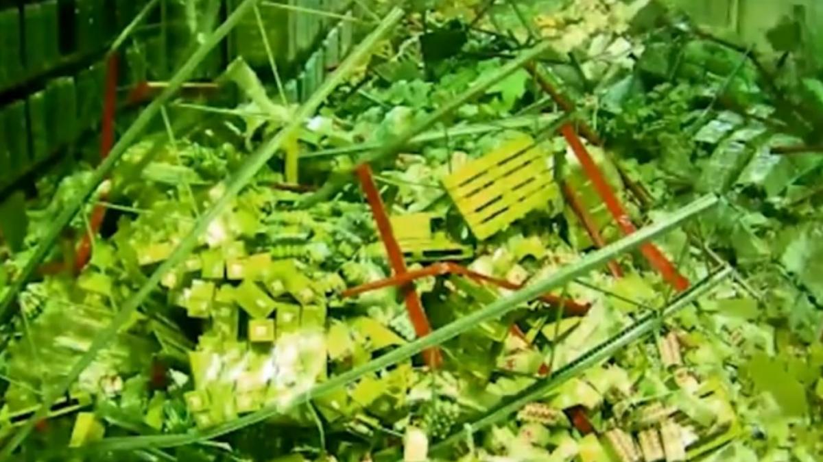 Acesta este momentul dramatic în care stivuitorul a distrus întreg depozitul. Clipul, filmat într-un depozit anonim, îl are în prim plan pe șoferul stivuitorului. Doi muncitori l-au privit cum venea încet printre rafturi, însă dezastrul a avut loc când a ajuns lângă ei.