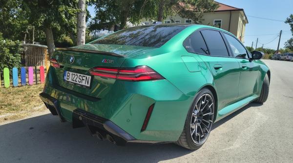 Aerul din București era deja un zid fierbinte la ora la care am urcat în M5. Am apăsat butonul de start și mașina a pornit într-o liniște aproape absolută, propulsată de motorul electric. Da, un M5 care nu huruie la pornire! Un șoc pentru puritani, o revelație pentru pragmatici. Am ieșit din București în modul pur electric, o experiență aproape suprarealistă cu un M5. Sutele de cai putere dormeau sub capotă, în timp ce mă strecuram prin trafic ca o mașină oarecare, doar că mult mai arătoasă. Bateria de mare capacitate își făcea treaba cu brio, permițându-ne un rulaj de aproape 50 de kilometri în regim pur electric. E suficient pentru naveta zilnică a multora, iar asta, la un M5, e aproape de necrezut. Pe măsură ce ne îndepărtam de oraș, am simțit o nevoie incontrolabilă de a elibera bestia. Pe A2, am trecut în modul Sport. Și atunci, a început spectacolul! Motorul V8 de 4,4 litri biturbo a prins viață cu un urlet metalic, iar accelerația m-a lipit de scaun. Cei 727 de cai putere și cuplul de 1000 de Nm se simt ca o forță a naturii, împingând mașina înainte cu o violență controlată. Îi trebuie doar 3,5 secunde să ajungă de la 0 la 100 de km/h, deși cântărește nu mai puțin de 2,5 tone. Depășirile erau simple formalități, virajele erau atacate cu o precizie chirurgicală, iar sistemul de tracțiune integrală M xDrive te ține lipit de asfalt, indiferent cât de mult forță există. Am ajuns la Balcic cu zgomotul mării în fundal, peisaje ca pe o insulă grecească și senzația de adrenalină încă pompând prin vene.
