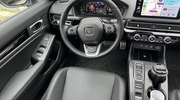 Honda Civic 2026 este una dintre acele mașini care nu încearcă să te impresioneze în parcare, ci pe drum. Abia după primii kilometri începi să înțelegi ce au urmărit inginerii japonezi. Totul este calibrat astfel încât tu, omul de la volan, să simți că mașina lucrează cu tine, nu împotriva ta. Pornirea de pe loc în oraș este primul test. Civic pleacă lin, fără smucituri, fără ezitări. Accelerația este dozată fin, iar răspunsul motorului este previzibil, ceea ce contează enorm în traficul aglomerat. În modul Normal, mașina pare că anticipează ce vrei să faci. Nu sare agresiv, dar nici nu se simte leneșă. Este acel echilibru rar în care te miști rapid fără să-ți dai seama că te grăbești. Orașul este, poate, mediul în care Civic se simte cel mai „acasă”. Direcția este ușoară la viteze mici, vizibilitatea este excelentă, iar dimensiunile sunt perfect controlabile. Printre mașini parcate, sensuri giratorii și semafoare, Civic se strecoară cu o naturalețe care te face să uiți că nu conduci un hatchback mic, ci o compactă în toată regula. Suspensia filtrează bine denivelările urbane, liniile de tramvai și asfaltul peticit, fără să transmită șocuri neplăcute în volan sau scaune. Ieșirea pe autostradă schimbă complet atmosfera. Apeși accelerația mai hotărât, iar Civic răspunde fără dramă, dar cu determinare. Sprintul până la viteze de croazieră este curat și progresiv în modul Eco sau Normal. Motorul termic de 143 de cai putere urcă în turații cu o voce discretă, bine izolată fonic, iar stabilitatea la viteze mari este impecabilă. La 130 km/h, Civic este calmă, tăcută și extrem de bine așezată pe drum. Direcția se întărește exact cât trebuie, mașina nu plutește, nu devine nervoasă și nu cere corecții constante. Este genul de comportament care îți dă încredere să parcurgi sute de kilometri fără oboseală. Pilotul adaptiv și asistențele lucrează în fundal, dar chiar și fără ele, Civic este o mașină care se conduce ușor și intuitiv pe distanțe lungi. Adevărata surpriză vine însă atunci când părăsești autostrada și intri pe drumuri de țară. Aici Civic își arată adevăratul caracter. În modul Sport, direcția devine mai fermă, răspunsul accelerației mai prompt, iar mașina pare că se strânge în jurul tău. Sprintul până la sută e impresionat, 7,9 secunde. Curbele sunt abordate cu o siguranță dezarmantă. Civic intră precis, fără subvirare excesivă, și rămâne stabilă chiar și atunci când ridici puțin ritmul. Șasiul este echilibrat, iar suspensia oferă un compromis excelent între confort și control. Pe drumuri virajate, cu asfalt imperfect, Civic rămâne lipită de drum, fără să devină rigidă sau inconfortabilă. Volanul transmite suficient feedback încât să știi ce se întâmplă sub roți, dar nu atât de mult încât să te obosească. Este o mașină care te încurajează să conduci mai mult, nu mai repede. Consumul urban a ajuns și la 5,2 litri/100 km. Impresionant.