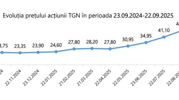 De la începutul anului, acțiunile Transgaz au crescut cu 105%, de la 23,80 lei/acțiune lei, la începutul lunii ianuarie 2025, la 48,85 lei/acțiune, în data de 22 septembrie 2025. Menținerea unei tendințe generale de creștere indică încrederea pieței în performanța pe termen mediu și lung a companiei și interesul crescut din partea investitorilor, atrași de potențialul de creștere și de randamentele oferite de companie.