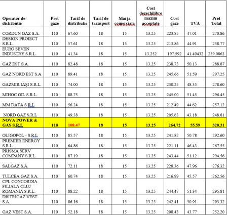 Doar costul gazului și marja de furnizare sunt concurențiale.