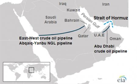 Conducta Est–Vest din Arabia Saudită (Petroline) poate transporta maximum 5 milioane de barili pe zi, iar conducta Habshan–Fujairah din Emiratele Arabe Unite are o capacitate de aproximativ 1,5 milioane de barili pe zi. În total, doar 6,5 milioane de barili pot fi deviați, lăsând un deficit brut de 13,5 milioane de barili pe zi — echivalentul a 13% din producția globală.