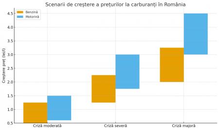 Estimările arată că, în funcție de amploarea unei eventuale crize regionale sau internaționale, prețurile la pompă ar putea crește cuprinse între 0,5 și 4,5 lei pe litru, cu motorina în prima linie a majorărilor.