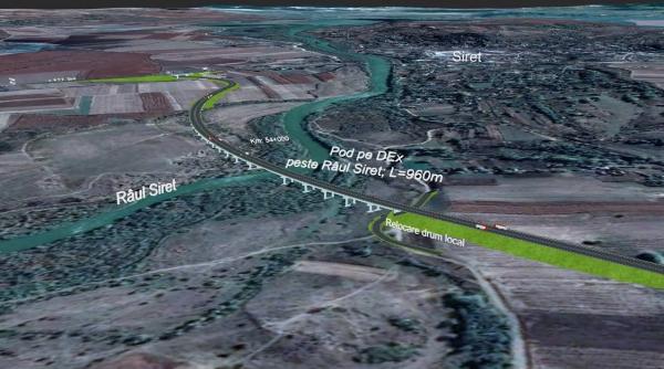 – un pod de aproape un km (967 metri) peste râul Siret,
