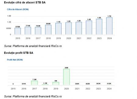 STB SA a raportat în 2024 o cifră de afaceri de 1,7 miliarde lei, în creștere cu 10% față de 2023. Compania a închis anul cu un profit net de 612.208 lei, în creștere cu 9% față de anul precedent. Numărul angajaților s-a situat la 9.826.