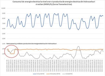 În noaptea de 17 spre 18 ianuarie, utilizarea hidrocarburilor pentru producerea de electricitate s-a redus la jumătate, iar în prima parte a zilei de 18 ianuarie scăderea a fost de aproximativ 25%. Energia eoliană a compensat producția scumpă, permițând reducerea importurilor și limitarea utilizării gazelor în centralele electrice.