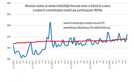 În prezent, contribuțiile la Pilonul 3 sunt deductibile în limita a 400 EUR/an pentru persoane fizice și angajatori, ceea ce face ca sumele virate de fiecare participant să fie de aproape trei ori mai mici decât cele din Pilonul 2. Actualizarea acestui plafon ar reprezenta o oportunitate importantă de a stimula economisirea suplimentară pentru vârsta pensionării. În contextul creșterii veniturilor și al provocărilor demografice, majorarea deductibilității ar face Pilonul 3 mai atractiv, încurajând participarea activă atât a populației, cât și a angajatorilor.