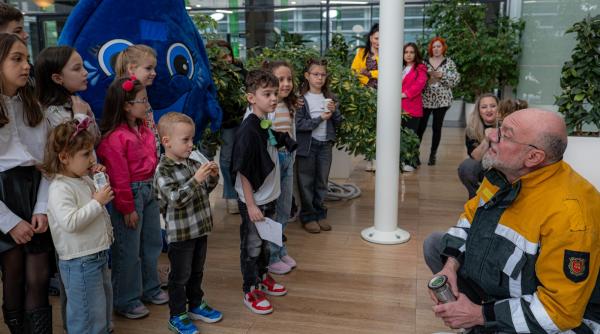 Mascota „Picătura Norocoasă” i-a cucerit pe cei mici și le-a arătat, prin joacă, cât de important este să protejăm apa. Alături de ea, pompierul „luptător cu flăcările” le-a povestit cum apa poate salva vieți, iar un laborant i-a surprins cu experimente simple și captivante despre apa potabilă și importanța tratării acesteia.