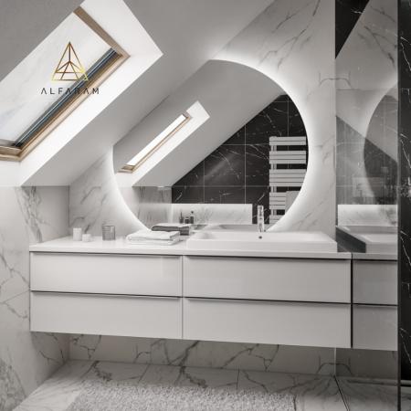 Oglindă rotundă pentru mansardă cu margini teșite și iluminare LED – OLGA LED [fot. Alfaram]