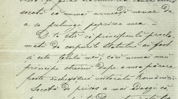 D-ta ştii că principiul proclamat de Corpurile Statului au fost şi este ţelul meu; căci numai un principe strein după a mea părere, poate închezăşui viitorul României.