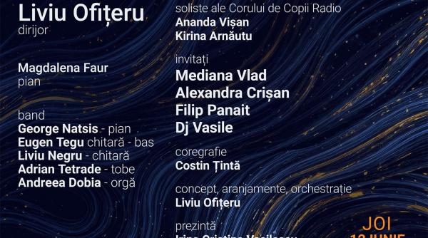 Concertul este dirijat de Liviu Ofițeru, care a realizat, de asemenea, și regia evenimentului, orchestrația și o parte dintre aranjamentele muzicale. Acompaniamentul la pian va fi asigurat de Magdalena Faur. Vor urca pe scenă ca invitați: Mediana Vlad, Alexandra Crișan, Filip Panait și DJ Vasile. Concertul se va derula cu participarea muzicienilor George Natsis – pian, Eugen Tegu – bas, Liviu Negru – chitară, Adrian Tetrade – baterie și Andreea Dobia – orgă/keybords și a solistelor Corului de Copii Radio: Ananda Vișan și Kirina Arnăutu. Coregrafia este semnată de Costin Țintă și în ipostaza de prezentator se va afla Irina Cristina Vasilescu.