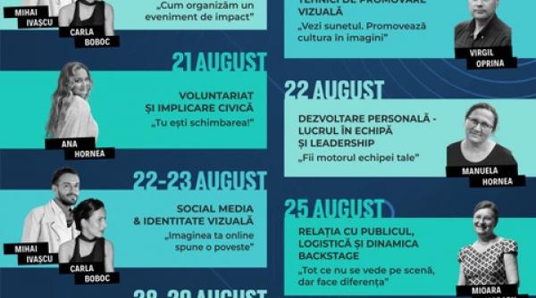 Printre temele atelierelor se numără: Managementul evenimentelor culturale – de la idee la scenă, Comunicare și promovare culturală: redactare de comunicate, vorbire în public, social media, promovare vizuală, Lucrul în echipă și leadership, Relația cu publicul și logistica de culise, Voluntariat și implicare civică.