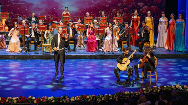 Concertul „Simfonia iubirii”, parte a unui turneu național desfășurat în luna martie 2026, propune publicului o călătorie muzicală construită în jurul temei iubirii, reunind lucrări semnate de Mozart, Rossini, Donizetti, Verdi, Ceaikovski, Puccini sau Ennio Morricone. Spectacolul aduce pe scenă Orchestra di Teatro d’Opera Italiana, Orchestra Opera Vox, Corul și Baletul Opera Vox, sub conducerea violonistului și dirijorului Bogdan Costache, care apare în dublă ipostază – dirijând și interpretând, după modelul tradiției vieneze consacrate de Johann Strauss.