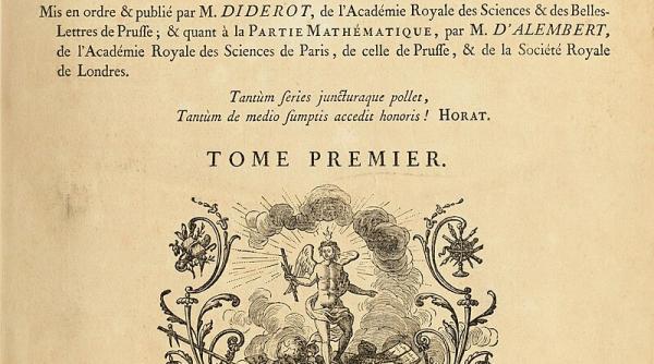 Tot aici: „Lucrarea cuprindea șaptesprezece volume (plus cinci volume anexe), la care se adaugă unsprezece volume de planșe. Ultimul dintre volumele Enciclopediei va fi publicat abia în 1780. Curând, succesul ei internațional va fi confirmat de ediții-pirat tipărite în afara Franței. Această lucrare titanică, la care contribuiseră cot la cot Voltaire, Montesquieu, Buffon, Condillac, Duclos, Marmontel, Helvétius, Raynal, Turgot, Necker, magistrați, ofițeri, doctori, filosofi, savanți, economiști și scriitori, atei și buni catolici, iezuiți și janseniști și a cărei celebră prefață, datorată lui d’Alembert, schița o clasificare generală a științelor, era menită, în viziunea lui Diderot, să formeze un tablou general al eforturilor spiritului omenesc în toate genurile și în toate timpurile. Rod al colaborării unor spirite pe cât de variate, pe atât de inegale, Enciclopedia își regăsește unitatea grație eforturilor lui Diderot, care, menținând unitatea generală a viziunii filosofice pe care se construise inițial, o transformă într-o apoteoză a civilizației, a științelor, artelor, industriilor menite să amelioreze condiția intelectuală și materială a omenirii... o imensă mașină ridicată împotriva spiritului, credințelor și instituțiilor trecutului (G. Lanson)”.