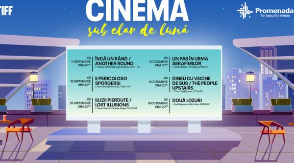 Proiecțiile vor avea loc în fiecare joi, de la ora 20:00, pe terasa de la etajul 2 de la Promenada Mall (Calea Floreasca, nr. 246B).