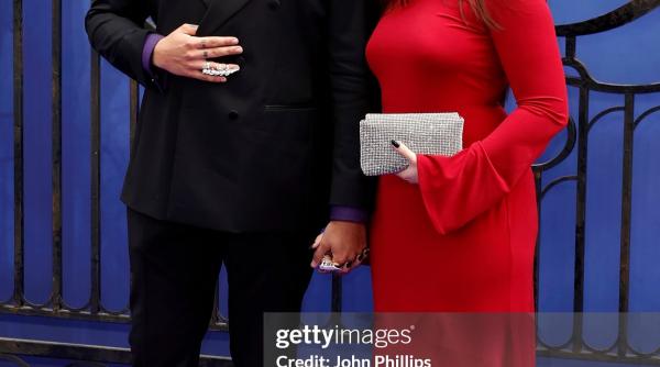 La evenimentul de la Londra, Dorobanțu a purtat un costum negru impecabil, cu o cămașă mov intens, completată de un papion din catifea și accesorii dramatice – inele statement pe ambele mâini – un manifest subtil despre personajul său. Alături de el, iubita sa a ales o rochie roșie cu glugă, în ton cu atmosfera gotică și misterioasă a serialului.