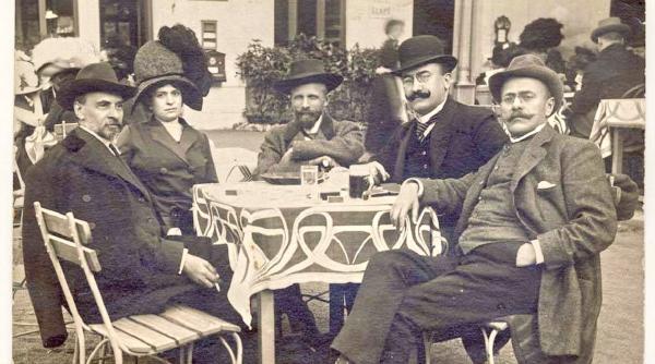 2. La bere - George Coșbuc, Elena Vaida-Voievod, dr. Ciuta, Alex. Vaida-Voievod, I.L. Caragiale (Karlsbad, 1911).