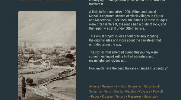 Expoziția prezintă imagini realizate în trecut de Frații Manakia, păstrate în arhiva de imagine a Muzeului Țăranului Român, și fotografii recente ale acelorași locuri, realizate începând din 2017 de conf. univ. dr. Cătălin D. Constantin în cadrul unei cercetări ample în peste 40 de așezări din nordul Greciei, Albania și Macedonia de Nord.
