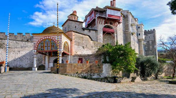 „Cunoscută mănăstire athonită. În grecește - Βατοπαιδίου. Sunt recepte două etimologii ale numelui dat: 1. Câmp/uri, loc neted (pedion) cu tufișuri, arbuști (vatos); 2. Copilul (paidion) din tufiș/uri (vatos). Cea de pe urmă interpretare este legată de tradiția conform căreia mănăstirea a fost întemeiată de împăratul Teodosie cel Mare după ce fiul său, Arcadius, a fost salvat în chip minunat de la un naufragiu, fiind aflat nevătămat sub un tufiș din această zonă a peninsulei.”