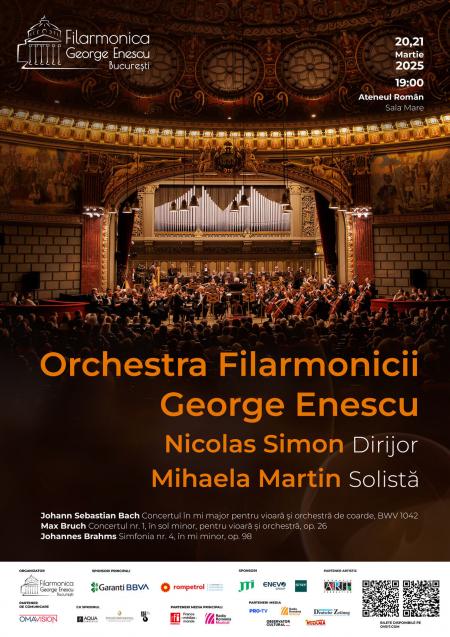Serile vor debuta cu rafinamentul baroc al Concertului în mi major pentru vioară și orchestră de coarde, BWV 1042 de Bach, urmat de romantismul intens al Concertului pentru vioară în sol minor, op. 26 de Max Bruch. Solista celor două concerte va fi Mihaela Martin, una dintre cele mai apreciate violoniste ale generației sale. Programul se va încheia cu Simfonia nr. 4 în mi minor, op. 98 de Johannes Brahms, considerată apogeul simfonismului brahmsian.