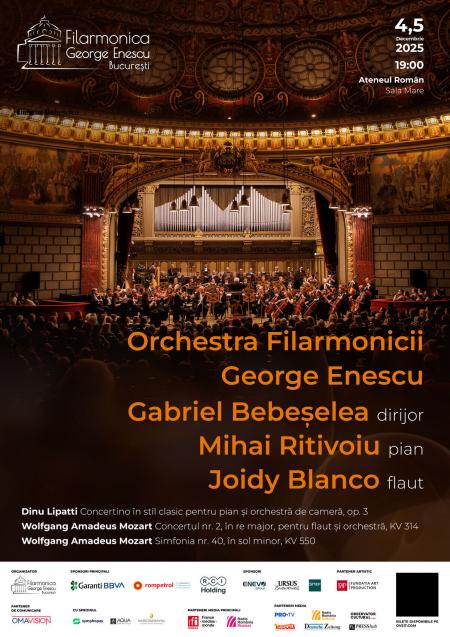 Publicul va asculta rafinatul Concertino în stil clasic pentru pian și orchestră de cameră de Lipatti, strălucitorul Concert nr. 2 pentru flaut și orchestră și celebra Simfonie nr. 40 în sol minor de Mozart, într-un program care îmbină eleganța neoclasică, virtuozitatea solistică și clasicismul vienez.