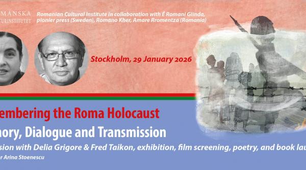 Institutul Cultural Român de la Stockholm va organiza în data de 29 ianuarie 2026 o seară de comemorare și dialog care îi reunește pe cercetătoarea și activista de origine romă Delia Grigore, președinta Asociației Centrul Rromilor „Amare Rromentza”, și pe scriitorul și activistul suedez de origine romă Fred Taikon, președintele asociației „É Romani Glinda”, într-o conversație în limba engleză moderată de editoarea Arina Stoenescu, la sediul reprezentanței. Vor fi aduse în discuție volumul Holocaustul împotriva Romilor: album de memorie și recunoștință, București 2023, publicat de Departamentul pentru Relații Interetnice al Guvernului României și cartea bilingvă pentru copii Inelul cu cap de cal, Istoria romilor povestită copiilor de Ioanida Costache & Petra Gelbart, Pionier press, Suedia, 2026. Cu această ocazie, va avea loc și vernisajul expoziției dedicate Holocaustului împotriva romilor din România, realizată de É Romani Glinda în colaborare cu Fundația Social-Culturală a Romilor „Ion Cioabă” și The Virtual Museum of the Roma Holocaust. De asemenea, în cadrul evenimentului va avea loc proiecția filmului documentar Roma Tears (2006), realizat de Luminița Cioabă. Parteneri: Centrul Național de Cultură a Romilor – Romano Kher (CNCR-RK), Asociația Centrul Rromilor „Amare Rromentza” din România, Organizația „E Romani Glinda” din Suedia și Ambasada României în Regatul Suediei.