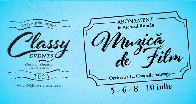 O vară cinematografică la Ateneul Român – sub egida Classy Events – Terapie prin muzica. Oferta specială: 4 concerte, un Abonament.
