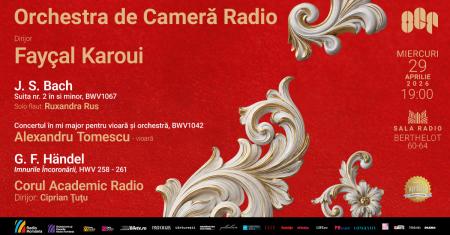 În aceeași seară, veți mai asculta și Bach: Suita nr. 2 în si minor (solo flaut: Ruxandra Rus) și Händel: Imnurile încoronării, compuse pentru ceremonia de încoronare a regelui George al II-lea al Marii Britanii, desfășurată pe 11 octombrie 1727, la Westminster Abbey (Londra). Concertul se va derula cu participarea Corului Academic Radio (dirijor: Ciprian Țuțu).