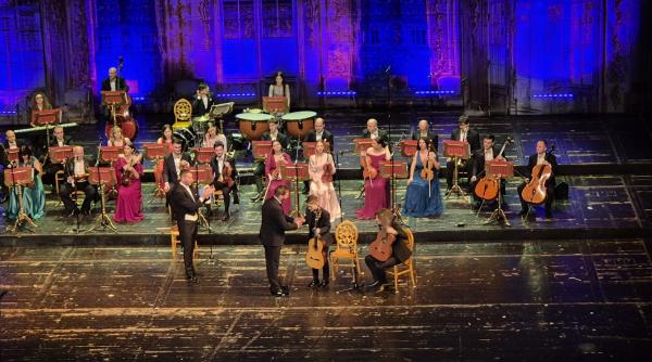 În egală măsură, spectacolul a inclus lucrări orchestrale emblematice, precum „Dunărea albastră” de Johann Strauss și „Balada Păsările tinereții noastre” de Eugen Doga, alături de polci antrenante „Tritsch-Tratsch-Polka” și tarantele italiene, precum „C’ela luna mezzo al mare”. Unul dintre cele mai aplaudate momente ale serii a fost interpretarea electrizantă a Csardas-ului de Vittorio Monti, în versiunea violonistului și dirijorului Bogdan Costache, direct din mijlocul publicului.