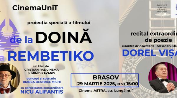 În ambele spectacole este implicat tânărul cineast de origine brașoveană Cristian Radu Nema, care aduce în orașul natal două filme de succes. După premiera de gală a peliculei „De la Doină la Rembetiko”, o nouă proiecție specială se va desfășura în orașul ardelean, sâmbătă, de la ora 15.00, la Cinematograful ASTRA, în cadrul Festivalului de Film CinemaUniT organizat de Cinemaraton. Proiecția se alătură altor filme de succes prezentate în fiecare zi până sâmbătă, în cadrul festivalului, sub semnătura unor monștri sacri ai cinematografiei românești: Dan Pița, Victor Rebengiuc, Toma Enache, Stere Gulea sau Cristi Puiu. Filmul, conceput după o idee și scenariu semnate de Bianca Beatrice Michi și regizat de Cristian Radu Nema în colaborare cu Mimis Ravanis, a avut premiera în toamna anului trecut, în prezența protagonistului Nicu Alifantis și a fost urmat de un recital extraordinar la care au participat 12 muzicieni din România și Grecia, care au susținut un concert de muzică de doină și rembetiko.