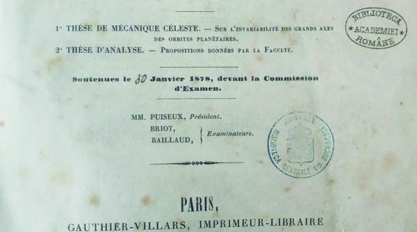 În completare: „În pofida capriciilor memoriei noastre culturale și a inhibițiilor programelor școlare din vremea comunismului, care au făcut ca imaginea lui Eminescu să fie mult mai bine conturată, cele două mari personalități au fost, practic, contemporane. Eminescu s-a născut, după cum se știe, la 15 ianuarie 1850, iar Spiru Haret la 15 februarie 1851. Diferența de vârstă dintre cei doi este de fix un an și o lună în favoarea poetului, dar înclinațiile vocaționale, structurile psihice specifice fiecăruia și disciplina muncii au făcut ca drumurile lor în viață să ia traiectorii diferite. Deși ambii au avut șansa să studieze în străinătate (Eminescu, la Berlin și Viena, Haret la Sorbona, după ce fusese bursier al Liceului „Sfântul Sava”, din București, doar ultimul dintre ei a reușit să și le încheie în mod strălucit cu o teză de doctorat într-un domeniu care combină principalele sale opțiuni vocaționale: matematica și astronomia. Teza sa de doctorat, intitulată Sur l’nvariabilité des Grandes Axes des orbites planétairs, în anul 1878, este cunoscută ca prima diplomă de doctor obținută vreodată de un român la Paris. Aureolat de această prestigioasă recunoaștere internațională a competențelor sale științifice, Spiru Haret a făcut la întoarcerea în țară o strălucită carieră universitară.”