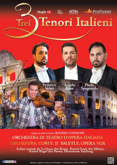 Cine ar putea fi mai potrivit să ne conducă în această poveste muzicală de Ziua Femeii, dacă nu trei tenori italieni care au crescut ascultând și interpretând aceste canzonete și arii celebre? Cine le-ar simți, trăi și cânta mai bine decât ei? Tocmai de aceea, arii celebre precum „Nessun dorma”, „La donna è mobile”, dar și canzonete nemuritoare ca „Mamma”, „’O sole mio”, „Santa Lucia”, „Funiculì, Funiculà” sau „Caruso” vă vor face să pășiți cu optimism în primăvara ce va veni.