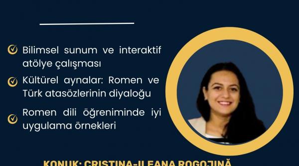 Institutul Cultural Român „Dimitrie Cantemir“ din Istanbul va organiza un eveniment educațional interactiv, sâmbătă, 30 august 2025, de la ora 18.00, la Conacul Musurus Pașa din metropola turcă. Cu acest prilej, lect. univ. dr. Cristina-Ileana Rogojină va susține prelegerea științifică cu titlul „Limba română: o călătorie cultural-lingvistică“ în cadrul unui workshop interactiv, structurat astfel: Secțiunea I. Limba română: o călătorie cultural-lingvistică. Activități practice. / Secțiunea a II-a: Oglinzi culturale: Proverbe românești și turcești în dialog. / Secțiunea a III-a: Bune practici în procesul de învățare a limbii române. Evenimentul organizat de ICR Istanbul va pune în valoare patrimoniul lingvistic și cultural românesc și va evidenția conexiunile lingvistice și culturale dintre limbile română și turcă, promovând, totodată, diversitatea culturală și dialogul intercultural.
