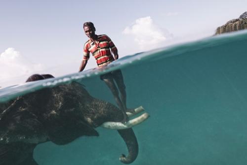 Insulele Andaman, India. Un elefant pare să fie un adevărat submersibil pentru prietenul său biped. Cel puţin aşa reiese din ipostaza surprinsă de Cesare Naldi.