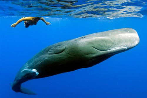 Andrew şi prietenul său, un pui de balenă. Ei au devenit prieteni, după ce Andrew i-a salvat viaţa, tratându-i rănile făcute de pescari. Fotograf: Peter Allinson