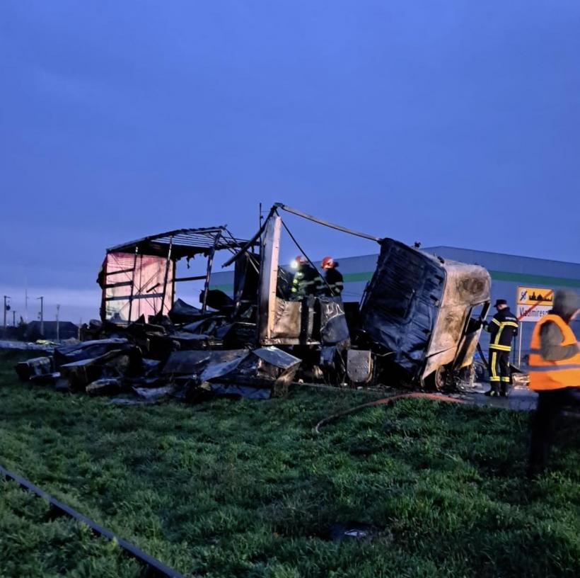 Impact fatal între doi mastodonți: Un camion cu mașini de spălat și o autobasculantă cu nisip au luat foc. Ambii șoferi au murit | Galerie Foto