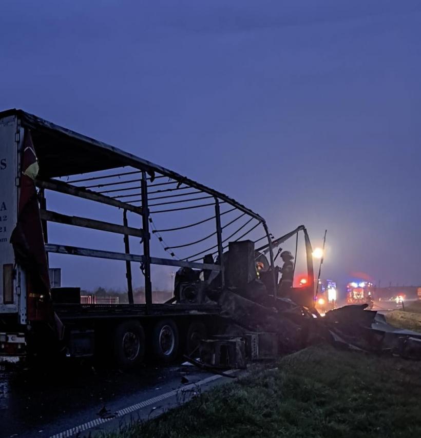 Impact fatal între doi mastodonți: Un camion cu mașini de spălat și o autobasculantă cu nisip au luat foc. Ambii șoferi au murit | Galerie Foto | Imagine 4