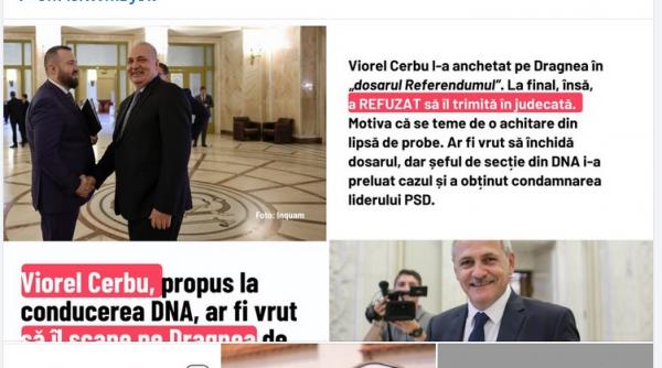 Pe pagina oficială de Facebook, Declic publică, în ajunul interviului lui Cerbu de la CSM, mai multe titluri, cum ar fi: „Viorel Cerbu l-a anchetat pe Dragnea în «Dosarul Referendumul». La final, însă, a refuzat să îl trimită în judecată. Motiva că se teme de o achitare din lipsă de probe. Ar fi vrut să închidă dosarul, dar șeful de Secție din DNA i-a preluat cazul și a obținut condamnarea liderului PSD”, precum și „Numele lui Viorel Cerbu apare și în dosarul Alinei Bica. L-ar fi rugat să afle dacă ea și Dragnea au telefoanele interceptate”.