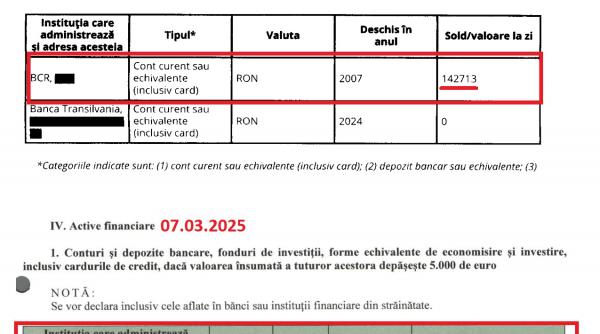 Concret, în declarația de avere din data de 22 noiembrie 2024, Nicușor Dan menționează că avea economii de 142.713 lei în contul de la BCR pe care îl deține încă din anul 2007. Tot în noiembrie, Nicușor Dan mai menționa că își deschisese, anul trecut, un cont curent la Banca Transilvania. Este vorba, cel mai probabil, de contul pentru campania electorală aferentă alegerilor locale din 2024.