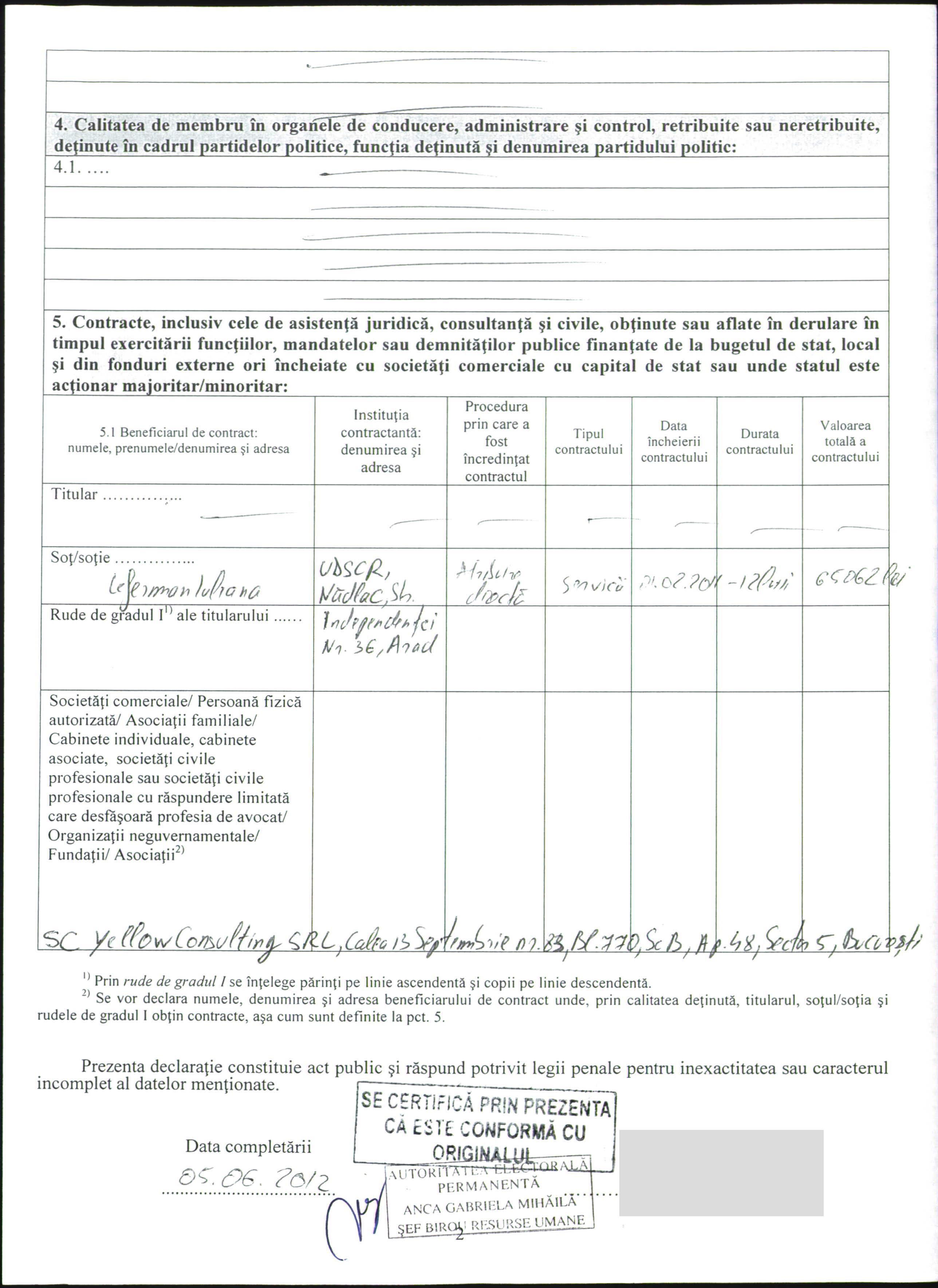 Fostul partener de afaceri al lui Ion Narcis Munteanu și Radu Mihai Onofrei, Bogdan Florin Mireanu, este, potrivit Registrului Comerțului, asociat la SC Yellow Consulting SRL, alături de Cornelia Rusanu, Andrei Alexandrescu și Iuliana Leferman. Aceasta din urmă a activat, de asemenea, până în anul 2009, la grupul parlamentar al Partidului Național Liberal.