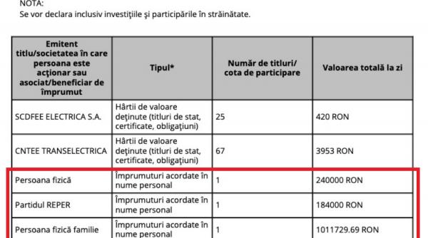 O altă informație interesantă care rezultă din aceste documente face referire la faptul că ministrul Investițiilor și Proiectelor Europene este un om mărinimos. Acesta notează, spre exemplu, că a acordat împrumuturi în nume personal în cuantum total de 1.435.729,69 de lei.