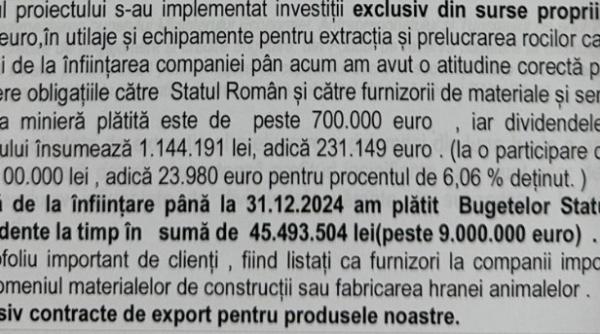 Potrivit unei adrese transmise recent de către conducerea companiei Ministerului Economiei și ANRMPSG, ea acuză Autoritatea de reglementare că-i refuză nejustificat exploatarea calcarului de aici, iar Ministerul Economiei, Digitalizării, Antreprenoriatului și Turismului refuză să clarifice această problemă.