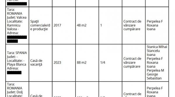 De asemenea, pe listă se mai regăsește și o casă de vacanță, cu suprafața de 88 de metri pătrați, amplasată în Spania, la Playa Blanca. Proprietarii declarați ai imobilului sunt Mihai Stănica, Ioana Stăncelu, Roxana Ioana Perpelea și Sebastian George Perpelea.