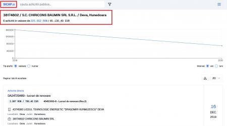Firma în cauză a derulat inclusiv lucrări pe bani publici, fără licitație, prin atribuire directă. Conform arhivei SEAP (Sistemul Electronic al Achizițiilor Publice), SC Chircons Baumin SRL a primit cinci astfel de contracte, între 2018 și 2019, în valoare totală de 198.652 de lei fără TVA, respectiv de 236.395,88 de lei cu TVA inclusă.