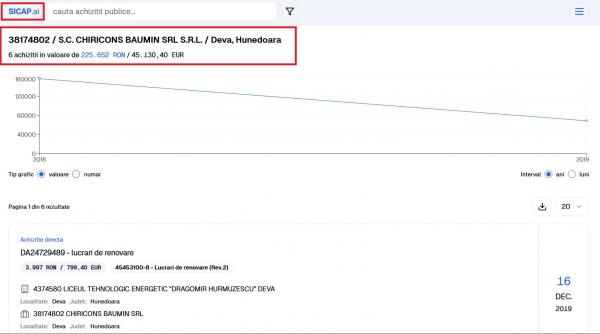 Apoi, în 21 noiembrie 2019, firma a primit de la Liceul Tehnologic Energetic „Dragomir Hurmuzescu” din Deva un contract de 12.805 lei fără TVA pentru lucrări de renovare. Același liceu a mai contractat firma lui Chiriachide în 9 decembrie 2019, pentru lucrări de reparații generale și renovare, în valoare de 24.970 de lei fără TVA. Iar la data de 16 decembrie 2019, a mai încasat de la aceeași unitate de învățământ un contract de renovare de 3.997 lei fără TVA.