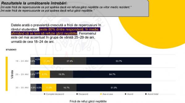 De asemenea, în rândul studenților, datele arată o prevalență ridicată a fricii de repercusiuni, „peste 80% dintre respondenți afirmând că se tem să refuze gărzi neplătite”.